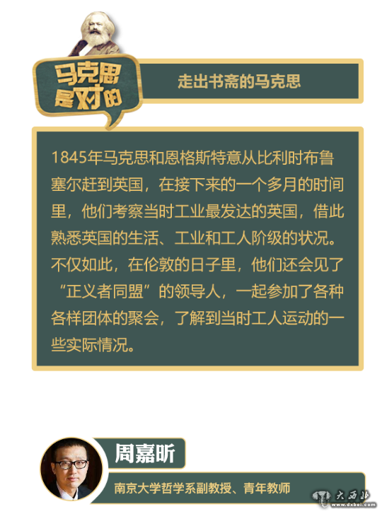 如果我们天真地认为,马克思是个天才,他关起门来就能想出人类历史的真理,那就大错特错了。“问渠哪得清如许,为有源头活水来”,他的哲学思想不仅仅是吸收了前人的智慧,还立足于社会实践,以及对社会实践的敏锐观察与思考。这些科学理论在揭示了现实世界真实性的同时,也转化为指导实践的行动指南。
