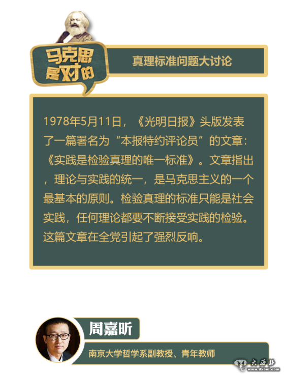 今天我们重温“真理标准问题大讨论”,确实让人感慨万千。“实践是检验真理的唯一标准”这个观点是马克思主义哲学的一个基本观点。1845年春,马克思在《关于费尔巴哈的提纲》第二条中就曾掷地有声地说:“人的思维是否具有客观的真理性,这并不是一个理论问题,而是一个实践的问题。”