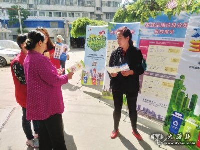 日前,嘉峪关东路社区组织工作人员和志愿者10余人,在兰州市电信局家属院开展了“垃圾分类”进小区活动,通过宣传展板和发放宣传册进行宣传,促进了居民积极参与和咨