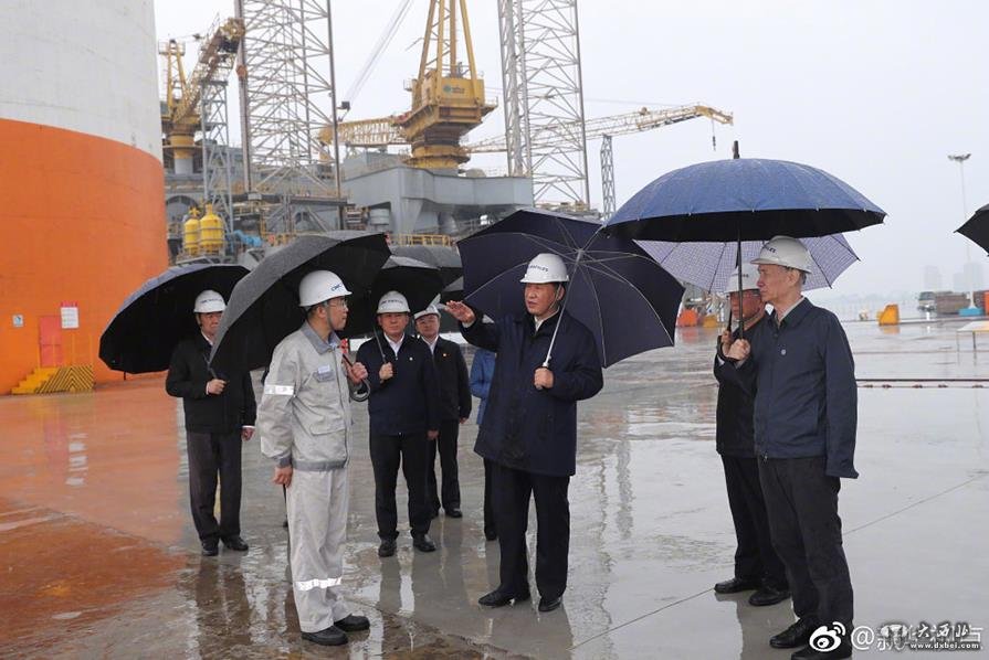 6月13日下午,习近平冒雨来到中集来福士海洋工程有限公司烟台基地。“蓝鲸1号”钻井平台巍峨伫立、“泰山”龙门吊高耸入云,习近平撑着伞边走边看,详细了解企业走自主创新发展之路、开展高端海洋工程设备自主设计研发制造情况。听说“蓝鲸1号”去年创造了可燃冰开采时间和产量两项世界纪录,习近平鼓励他们继续努力。总书记同现场的工人们一一握手,他说,基础的、核心的东西是讨不来买不来的,要靠我们自力更生、自主创新来实现。我看你们有这个信心,希望你们迎难而上、再接再厉。(记者张晓松、谢环驰)