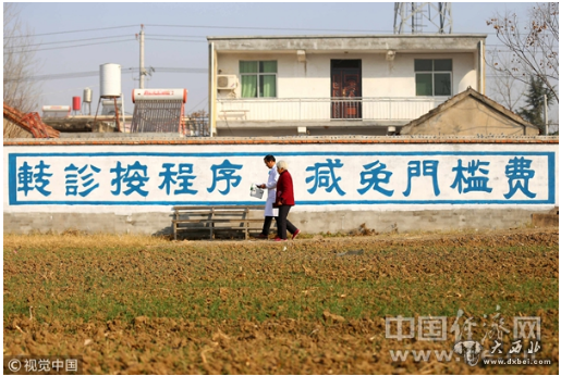 资料图片:2017年11月26日,安徽省蚌埠市固镇县任桥镇泰山村,乡村医生唐俊峰在向村民提供家庭医生上门诊视服务。(图片来源:视觉中国)