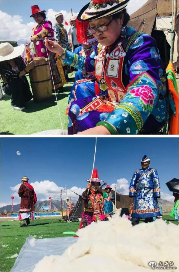 6月17日,肃南县索朗格赛马场民俗文化展示区,三十多位裕固族非物质文化遗产传承人,正在将裕固族传统生活场景现场再现,向各方游客展示裕固族独特的民俗文化。“打羊毛”、“捻线”、“织褐子”、“擀毡”、“绣荷包”、“打酥油”、“制作帐房”等活动,吸引了大批游客。