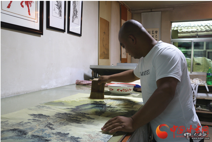 在相距不远的滩歌镇下街村,记者见到了另一位被当地人做为榜样的残疾人郭建良。郭建良是武山县滩歌镇残联专职委员,也是天水市中青年书法家协会会员、天水市书法协会会员。他自幼爱好文学艺术,但因患股骨头坏死疾病而致残,为了不给家人增加负担,他开始自学书画装裱技术,钻研学习名家书画,1997年,小有成就的他创办了滩歌镇“威远画廊”,专营书画装裱及书画创作业务。2010年6月获得第四届全省残疾人书法绘画摄影大赛二等奖,书法作品在2007年4月出版《甘肃风采》总第64期上刊载。