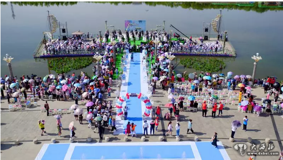 6月的金昌光彩照人,位于市区东部的金水湖景区,一片山水桥阁云相连的美丽景象。当日上午,伴随着优美的乐曲,一场浪漫、时尚的西式婚礼盛大举行。在小花童的牵引下,新娘登上典礼台,新郎紧随其后也一一上台。