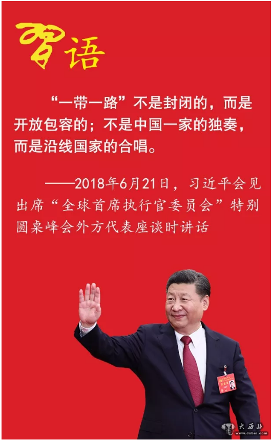 “一带一路”倡议提出5年来,充分挖掘各方潜力,造福沿线各国人民。“一带一路”不是封闭的,而是开放包容的;不是中国一家的独奏,而是沿线国家的合唱。我们鼓励跨国公司同中国企业开展合作,达到互利共赢,取得更为务实成果。
