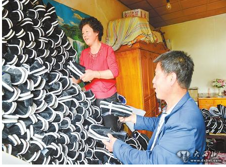 同村的做鞋大户杨迎吉就是王玉霞的固定客户,他每年销售布鞋2万多双,为他做活儿的30多户村民中,有一半以上是贫困户。“基本上都是农村留守妇女,大家闲了的时候来我这儿纳鞋底、做鞋帮,每人每年可以挣到5000元左右。”