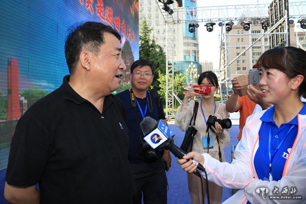 演出结束后,记者采访了中国曲艺家协会主席、中国文艺志愿者协会主席姜昆。 贾笑云 摄