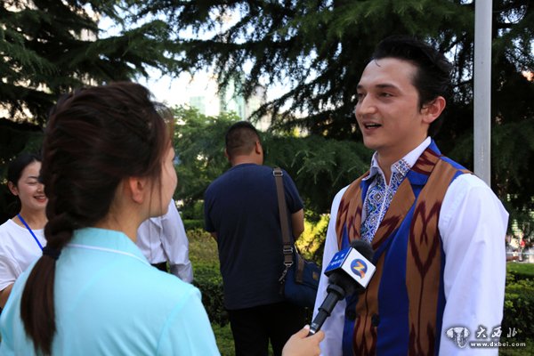 演出结束后,记者采访了中央军委政治工作部歌舞团维吾尔族舞蹈家玉米提。 贾笑云 摄