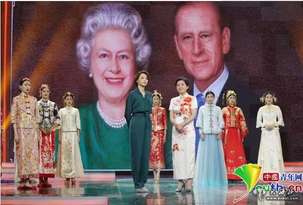 在CCTV《非遗公开课》节目中,大屏幕显示的是姚建萍第二次为英国女王创作的肖像作品、国礼《岁月如歌》。