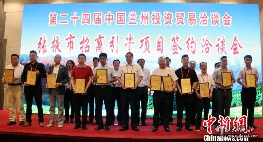 当日下午,第二十四届兰洽会张掖市招商引资项目签约仪式在兰州举行。张掖市共签约项目83项,其中:合同项目57项,投资额99.55亿元;达成意向性协议项目26项,意向性投资额162.88亿元。涉及现代农业、装备制造、交通能源、生物医药、商贸物流、文化旅游、市政设施等多个行业,涵盖经济、文化、社会、生态等重要领域。