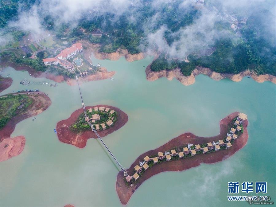 空中俯瞰浙江省丽水市云和县云和湖旅游景区(5月31日无人机拍摄)。从2018年初开始,浙江省丽水市云和县相关部门践行“绿水青山就是金山银山”的发展理念,通过推广打造绿色“零排放”全电景区,在发展旅游的同时保护生态环境。新华社记者徐昱摄
