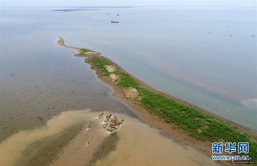 被野放的麋鹿在江西鄱阳湖湿地奔跑(4月3日无人机拍摄)。据国家林业和草原局统计,截至2018年7月8日,我国共有国际重要湿地57个、湿地自然保护区602个、国家湿地公园898个,湿地生态系统中有湿地植物4220种、动物2312种,湿地保护率达到49.03%。新华社记者周密摄