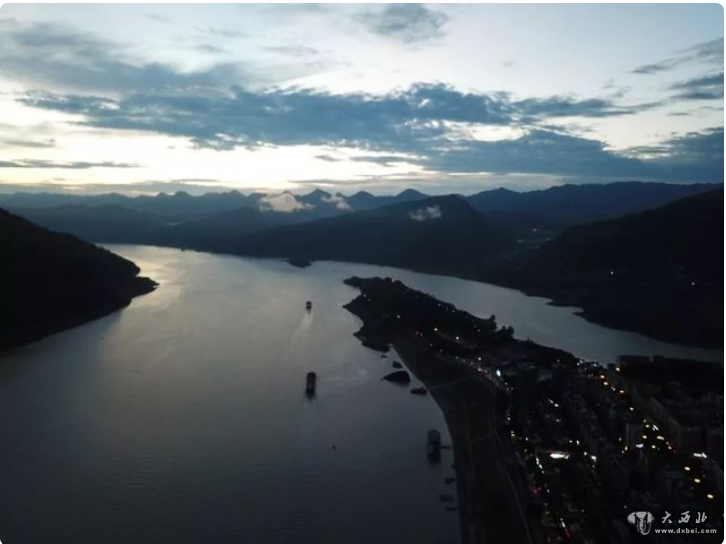 ↑7月29日,重庆市云阳县长江岸线俯瞰。新华社记者金立旺摄