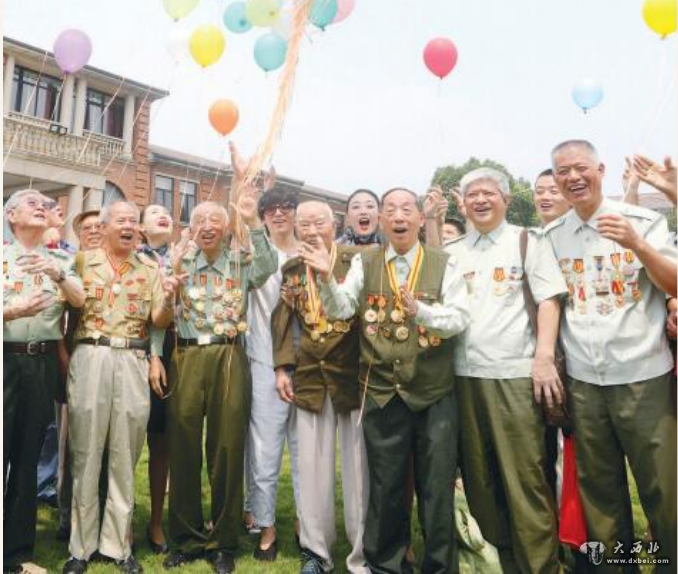 “八一”建军节即将来临之际,上海新四军“沙家浜”部队历史研究会在上海佘山西郊庄园举行纪念建军91周年座谈会。现英雄“沙家浜连”代表赶到现场,与原沙家浜部队老战士喜相逢,抚今追昔思奋进。图为新老战士放飞气球共庆佳节。(傅国林摄影报道)