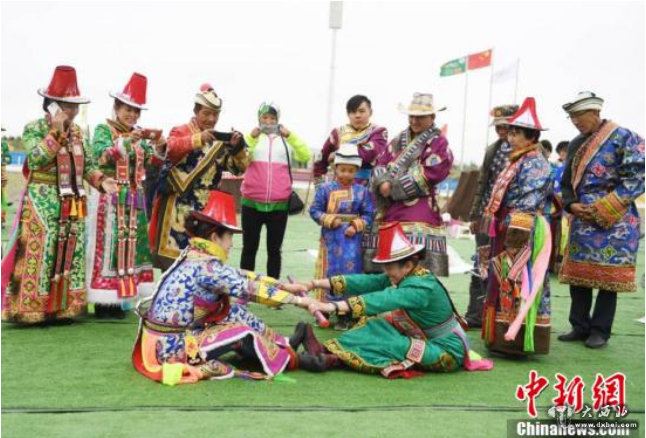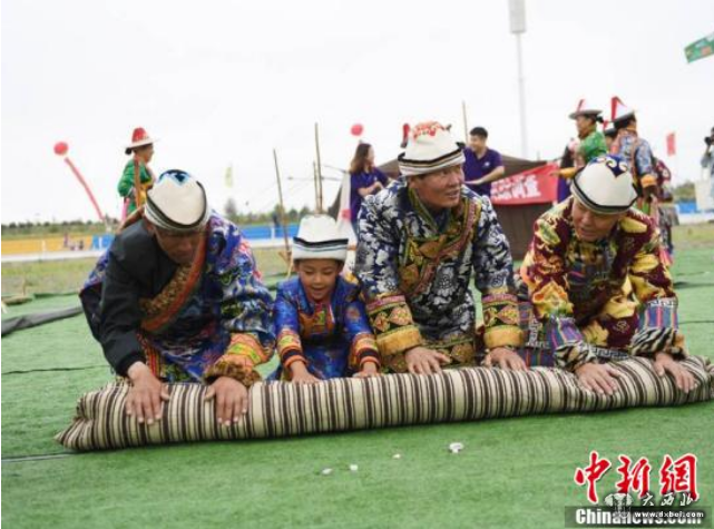 7月29日,甘肃张掖市肃南县裕固族非遗项目集中展演以此来“唤醒”渐渐失去的草原记忆。肃南裕固族自治县是一个多民族聚居区,十多个民族在这里交流交融交汇,特别是裕固族作为甘肃独有的一个少数民族,在长期的繁衍发展和历史变迁中,形成了自己独特的民风习俗和传统文化,积淀了涵盖语言、文学、历史、民俗、歌舞等诸多领域的非物质文化遗产。图为肃南裕固族表演拔棍传统体育项目。
