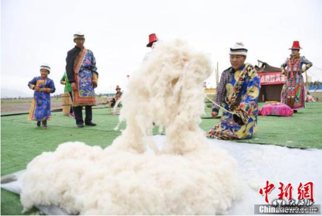 擀毡表演,擀毡用料主要以羊毛、牛毛为主,经过打毛、铺毛、喷水、铺毛、卷毡、捆毡连、擀连子等10多道工序制成毛毡,用于日常生活。擀毡过程中唱着擀毡调,边唱边做,节奏协调,亦劳亦乐。
