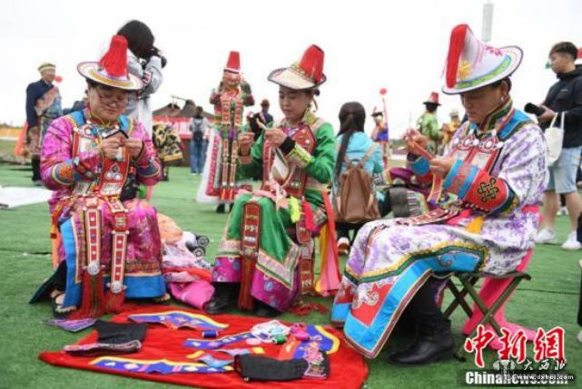 裕固族传统刺绣,裕固族刺绣是裕固族生产生活中一个非常重要的辅助性、装饰性手工艺术,它在吸纳了中国四大名绣和藏族、蒙古族等民间刺绣精华的基础上,逐渐形成了自己独特的风格和完整的艺术体系,具有浓郁的地方特色和民族气息。(杨艳敏摄)