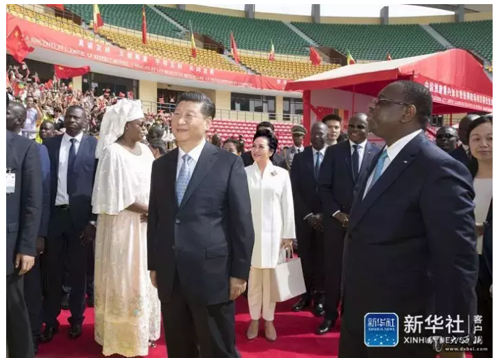 7月22日,习近平主席专门安排时间来到达喀尔市郊,同萨勒总统一起出席塞内加尔竞技摔跤场项目移交仪式。