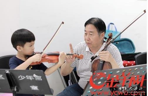 金羊网讯记者张豪通讯员郭雯珺报道:近日,南沙区少年宫的暑期课程接近尾声,来自澳门的邝国如正在小提琴课上教入门班的孩子识谱拉琴,这是他在南沙区少年宫执教的第五年。南沙区政协委员、澳门中乐团原首席二胡演奏家、澳门音乐曲艺粤剧总会理事长、广东省音乐联谊会常务副会长兼秘书长……邝国如身上有着多重标签,但从2013年南沙少年宫开办开始,他就成了颇受孩子们欢迎的“邝老师”。少年宫开办五年来,他几乎每个周末和寒暑假都从澳门或从化家中赶到南沙,在南沙少年宫教了一批又一批学生,还组建起了南沙少年宫民乐团。他说:“文艺事业是没有年龄限制的,我想为青少年艺术教育发挥余热。”