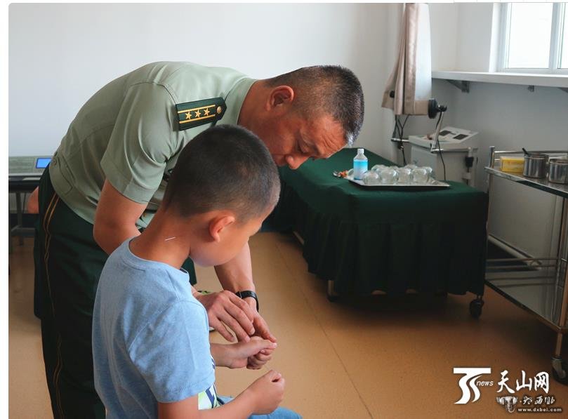 7月30日,从早上开始,武警新疆边防总队医院副院长、中医科主任王允若的诊室里患者就接连不断,他刚给这位把脉、开好药方,就立刻跑到治疗室,给那边的患者施针、推拿。
