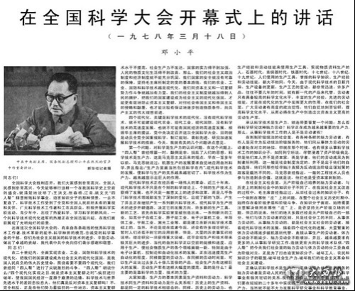 邓小平在全国科学大会开幕式上的讲话。(来源:网络)