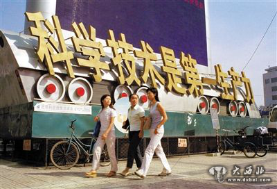 2002年9月,第五届中关村电脑节,位于海龙广场前的巨幅宣传口号科学技术是第一生产力。(来源:CFP)
