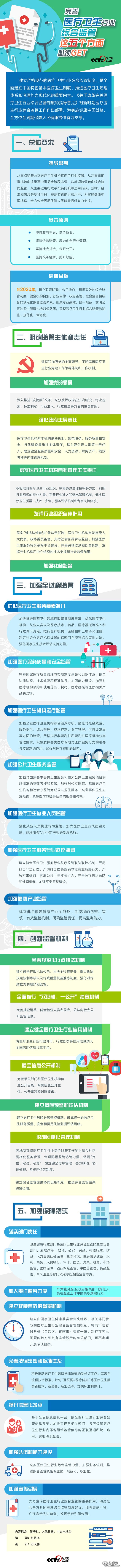 央视网消息:近日,国务院办公厅印发《关于改革完善医疗卫生行业综合监管制度的指导意见》。意见要求,加强医疗服务质量和安全监管,重点监管公立医疗卫生机构破除以药养医机制,落实药品、耗材采购制度和医疗服务价格政策等情况,控制医疗费用不合理增长。加强医疗、医保、医药联动,健全公立医疗卫生机构的激励约束机制。加大医疗卫生行风建设力度,将行政许可、行政处罚等信用信息纳入全国信用信息共享平台。严厉打击非法行医,加强对医疗养生类节目和医疗广告宣传的管理。到2020年,实现医疗卫生行业综合监管法治化、规范化、常态化。