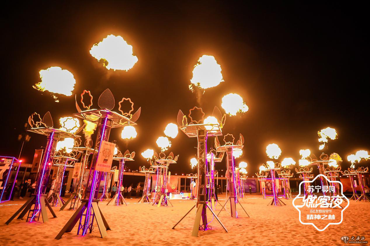 “精神之林”是燃客夜最核心的艺术装置,也是品牌争相斗艳的主场。记者看到,华为、伊莱克斯、美孚、壳牌及北汽新能源等31棵品牌代表之树组成8·18点阵,代表31种发烧精神,燃放出31朵沙漠之花。北汽新能源的燃,行有道达天下;伊莱克斯燃,创造科技美生活;华为燃,为智能互联……31家品牌商一起为苏宁易购818发烧购物节助“燃”。