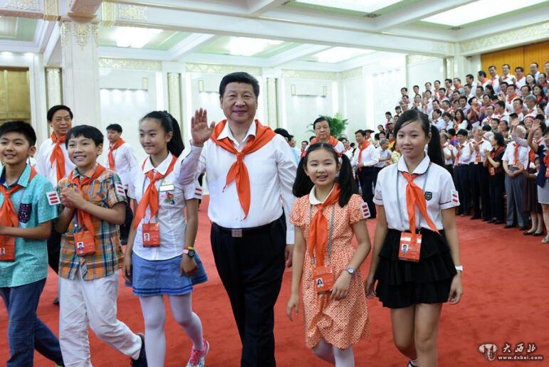 2015年6月1日,习近平在北京人民大会堂亲切会见中国少年先锋队第七次全国代表大会全体代表。新华社记者王晔摄
