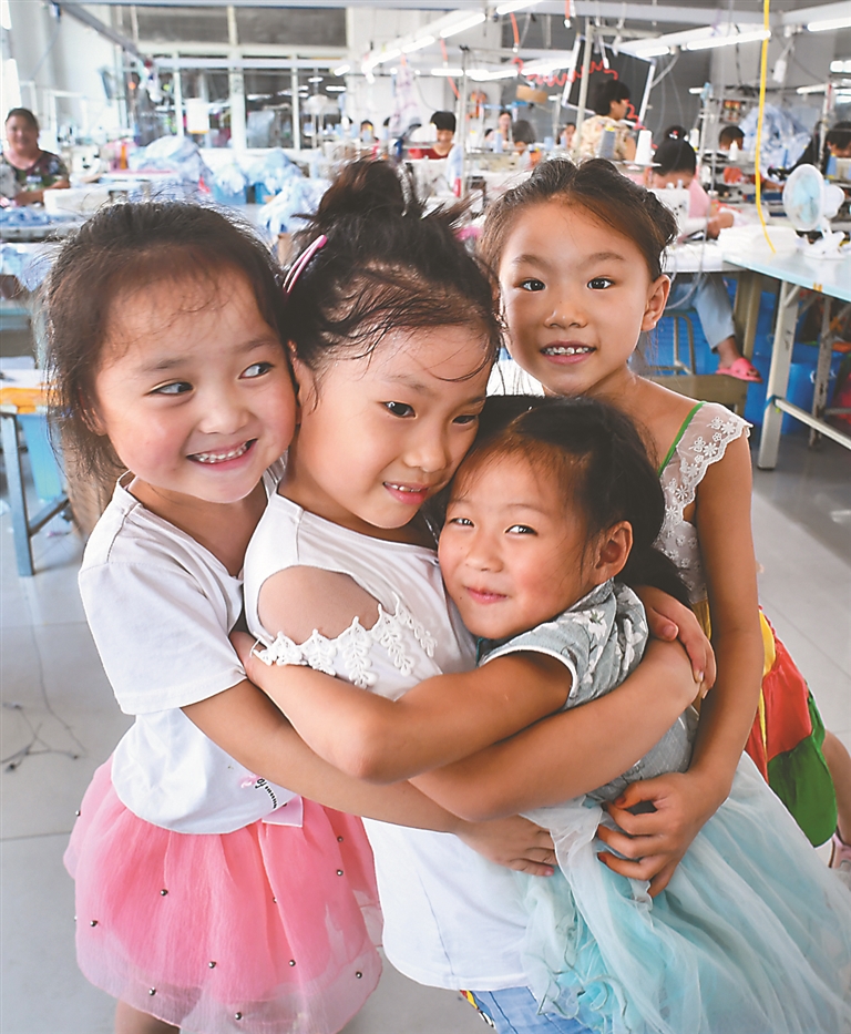 父母家门口上班,孩子不再留守,笑意写在脸上。