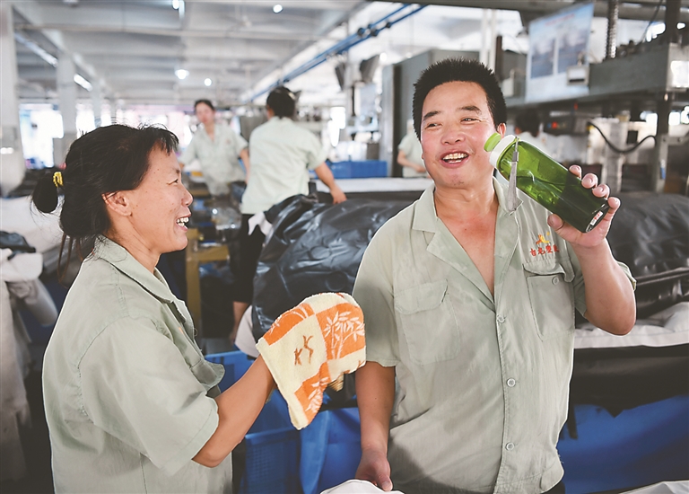 王生明夫妇在上海打拼多年,今年3月夫妻俩双双返乡就业,能照顾到家里的老人和孩子,家庭生活安逸无忧。