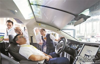 参观者在2017年智博会上体验基于5G网络的未来无人驾驶舱。(崔引摄)
