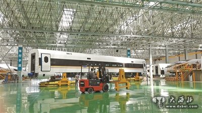 在中国中车宁波产业基地,高铁列车正在生产中。