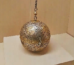 法门寺地宫出土的鎏金双蜂团花纹镂空银香囊 光明日报记者 李韵摄/光明图片