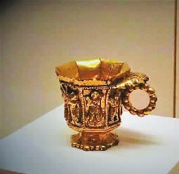 何家村窖藏出土的伎乐纹八棱金杯 光明日报记者 李韵摄/光明图片