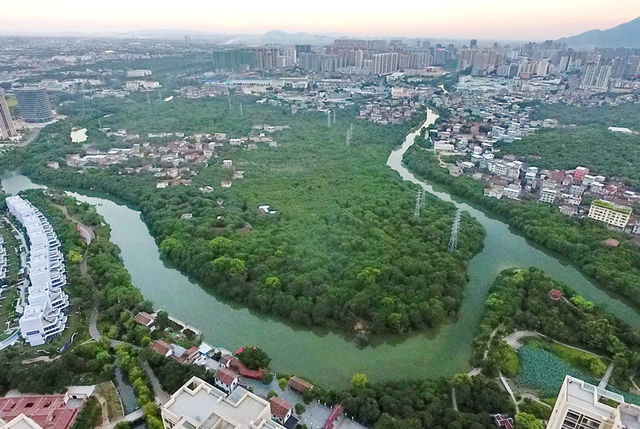 从高处俯瞰,荔枝林苍翠欲滴。仅“绿心”中的绶溪公园片区就保留着两千亩上万株荔枝树,被人们称为“城市的绿肺”。