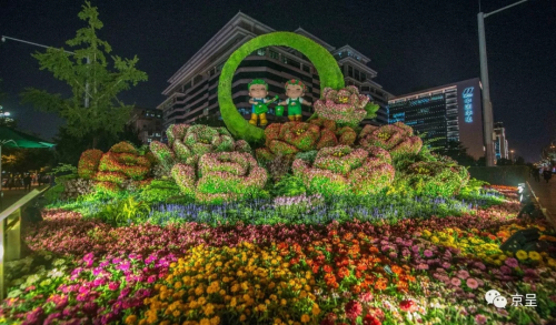 ▲“开放中国”主题花坛。花坛通过展示我国举办及参与的重大国际活动(一带一路、中非合作论坛、上合组织峰会等),让更多中国理念、中国方案得到世界广泛认同,