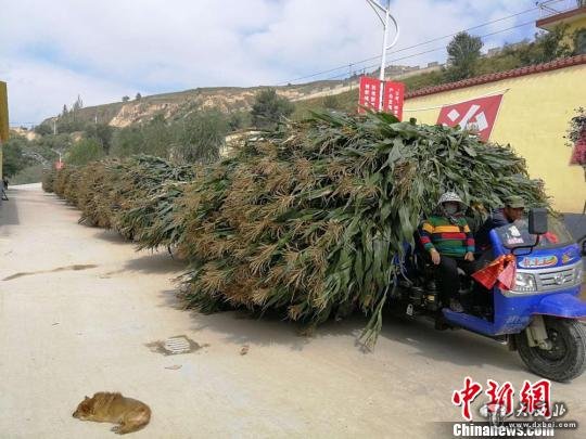 中新网兰州9月30日电(杜萍艾庆龙)趁着最近几天天气晴好,甘肃省兰州市榆中县甘草店镇咸水村村民李守录抓紧将地里的玉米草收割后,就近送到了村上的芳美肉牛养殖专业合作社。
