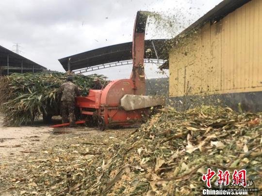 图为铡草机正在粉碎饲草。艾庆龙摄