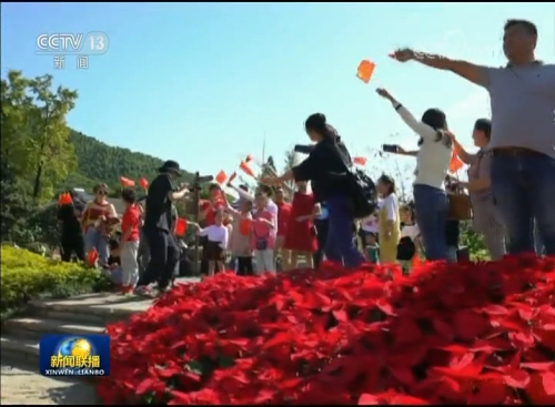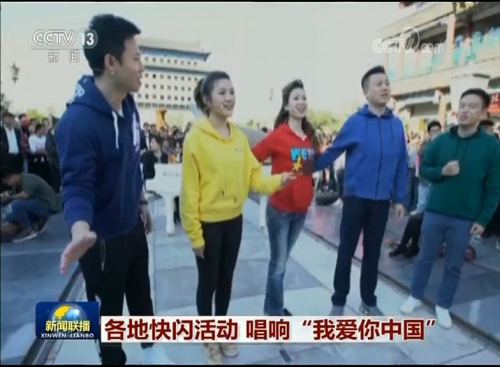 央视网消息(新闻联播):国庆长假期间,各地在商场、工地、旅游景点等多个地方推出了“我爱你中国”系列快闪活动。意想不到的场景,充满深情的歌声,点燃起人们的爱国热情,欢乐祥和、喜庆热烈的国庆氛围扑面而来。