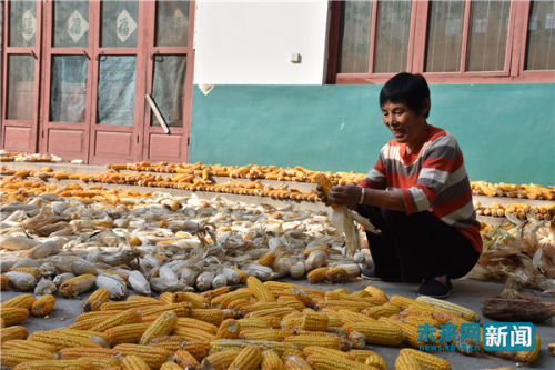 今年58岁的张绍美蹲在院子里的玉米堆前给玉米脱皮,做了半辈子农民,她说,每年到了这个时候,已经习惯了,看到身后成堆的玉米,心里很高兴。除了干农活,他平日还外出打工,收入越来越多元,生活也越来越好。