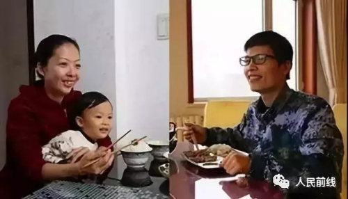 他的儿子睡醒后,搬了个凳子爬上去抱他们的结婚照,说自己有点儿难过:“我想爸爸妈妈的时候难过了,我想抱抱他们。”