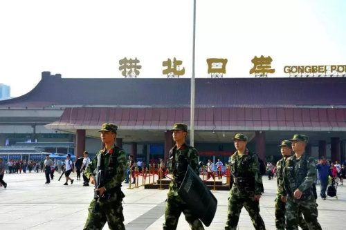 在天津,为了给驻地旅客安全祥和的国庆节假日秩序,10月1日起,武警天津总队执勤第一支队组织执勤官兵在车站、景点交通枢纽开展执勤巡逻任务,确保群众假期出行和游玩安全。执勤期间,官兵在维护秩序的同时还向旅客提供咨询服务,为过往游客指引道路解决困难,用真情服务为旅客平安护航,向中外旅客展示了中国军人的良好形象。
