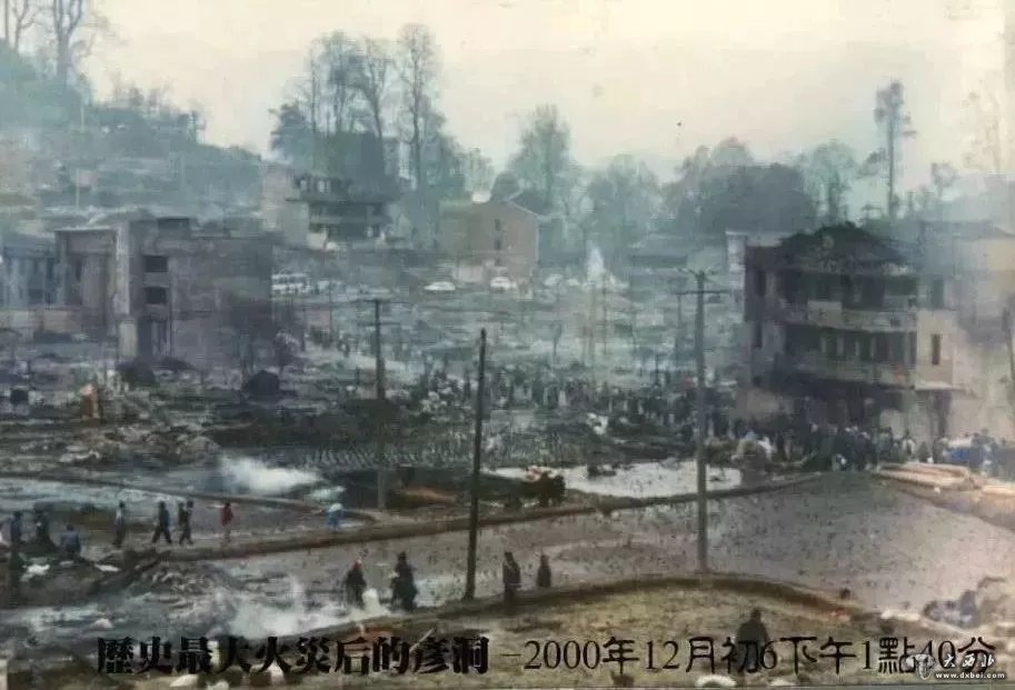▲2000年12月31日彦洞村发生特大寨火,废墟上的彦洞村百废待兴。