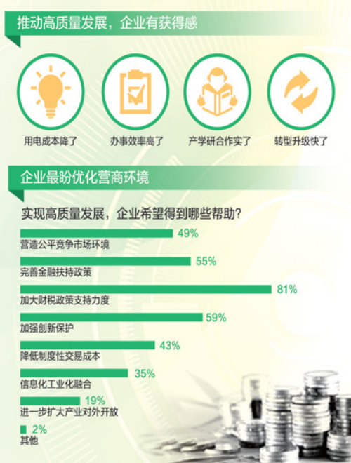调查中,55%的受访企业希望进一步完善金融扶持政策。