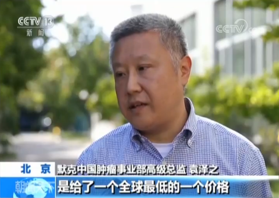 默克中国肿瘤事业部高级总监袁泽之:应该说我们是给了全球最低的一个价格。通过这次医保谈判,我们能够通过以价换量,让老百姓得到应用,这对中国的老百姓是个好事情。