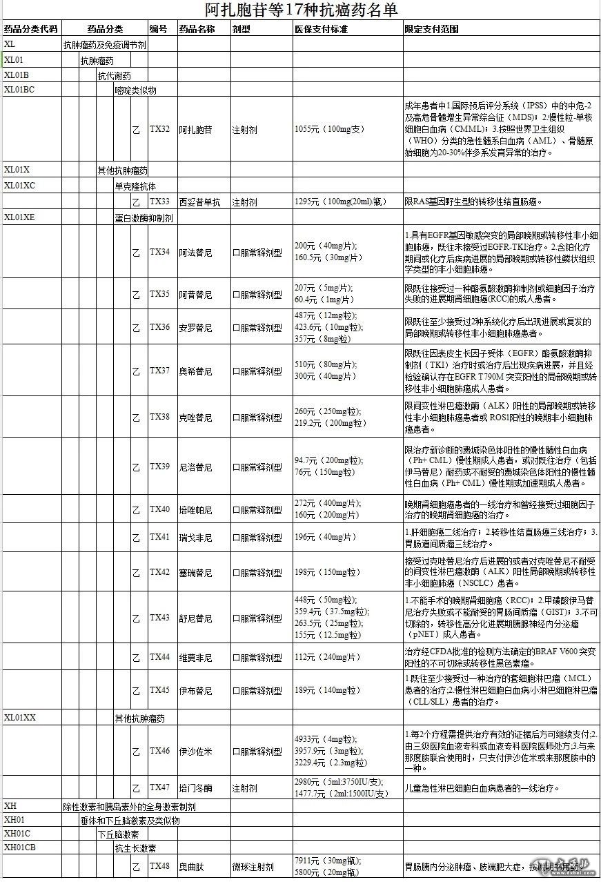 附件:阿扎胞苷等17种抗癌药名单↓