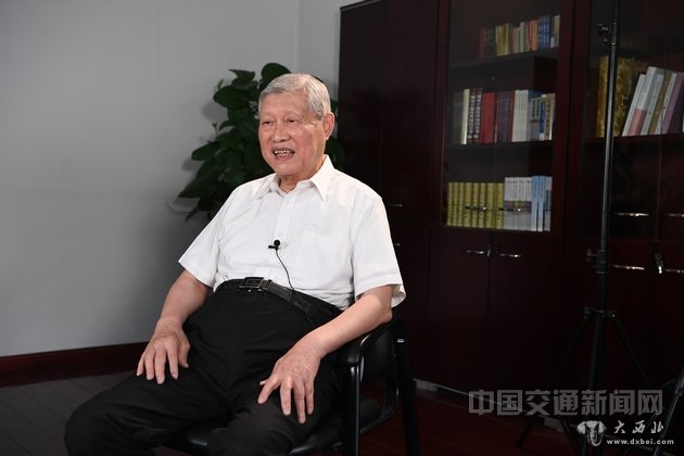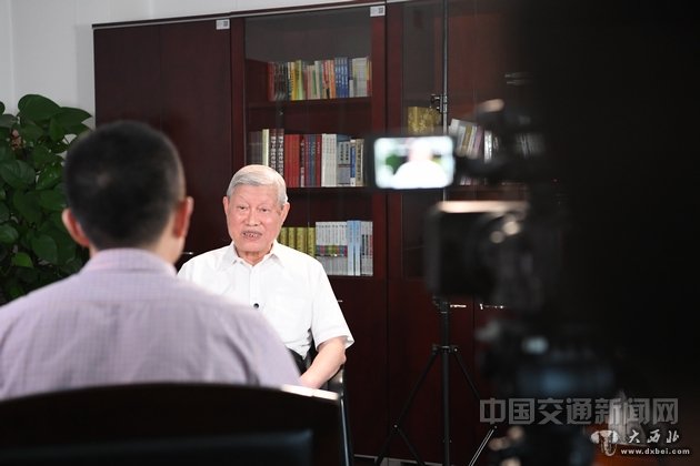 记者采访原交通部副部长林祖乙。梁熙明摄