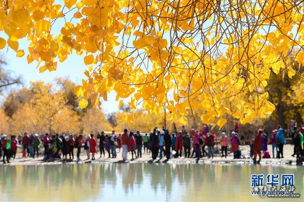 内蒙古自治区额济纳旗胡杨林如同披上金装,成为大漠中的一抹亮色。