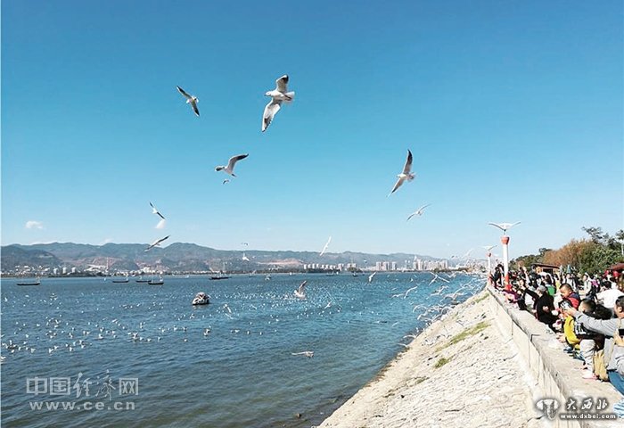 近年来,云南昆明市通过建设森林城市,城市生态环境显着改善。图为红嘴鸥在洱海与市民嬉戏。经济日报-中国经济网记者 黄俊毅摄
